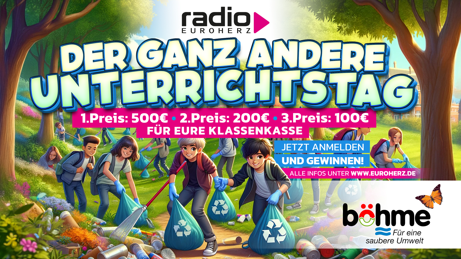 Schüler, Lehrer und wir von Radio Euroherz helfen zusammen und beseitigen den liegengebliebenen Müll in der Natur.