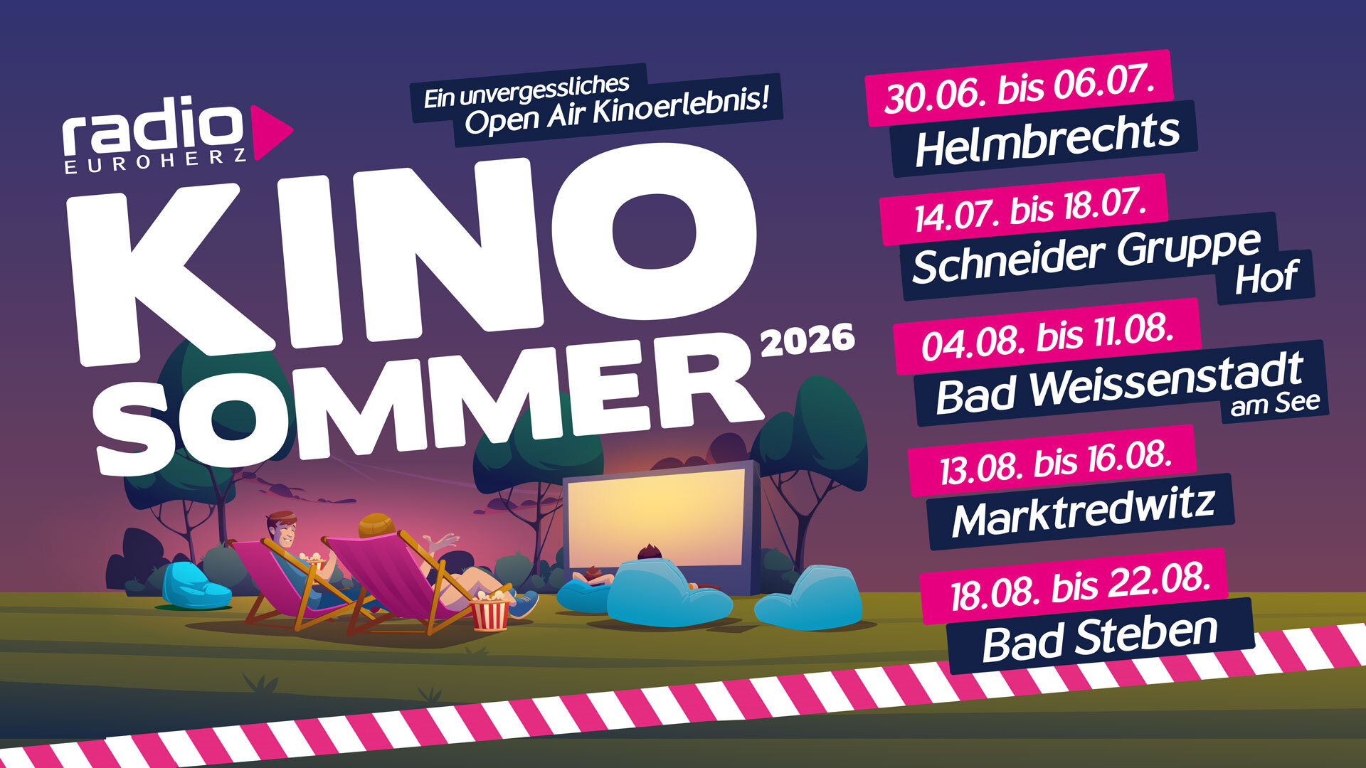 Top-Filme unter freiem Himmel genießen - und das an gleich fünf Standorten in der Euroherz-Region!