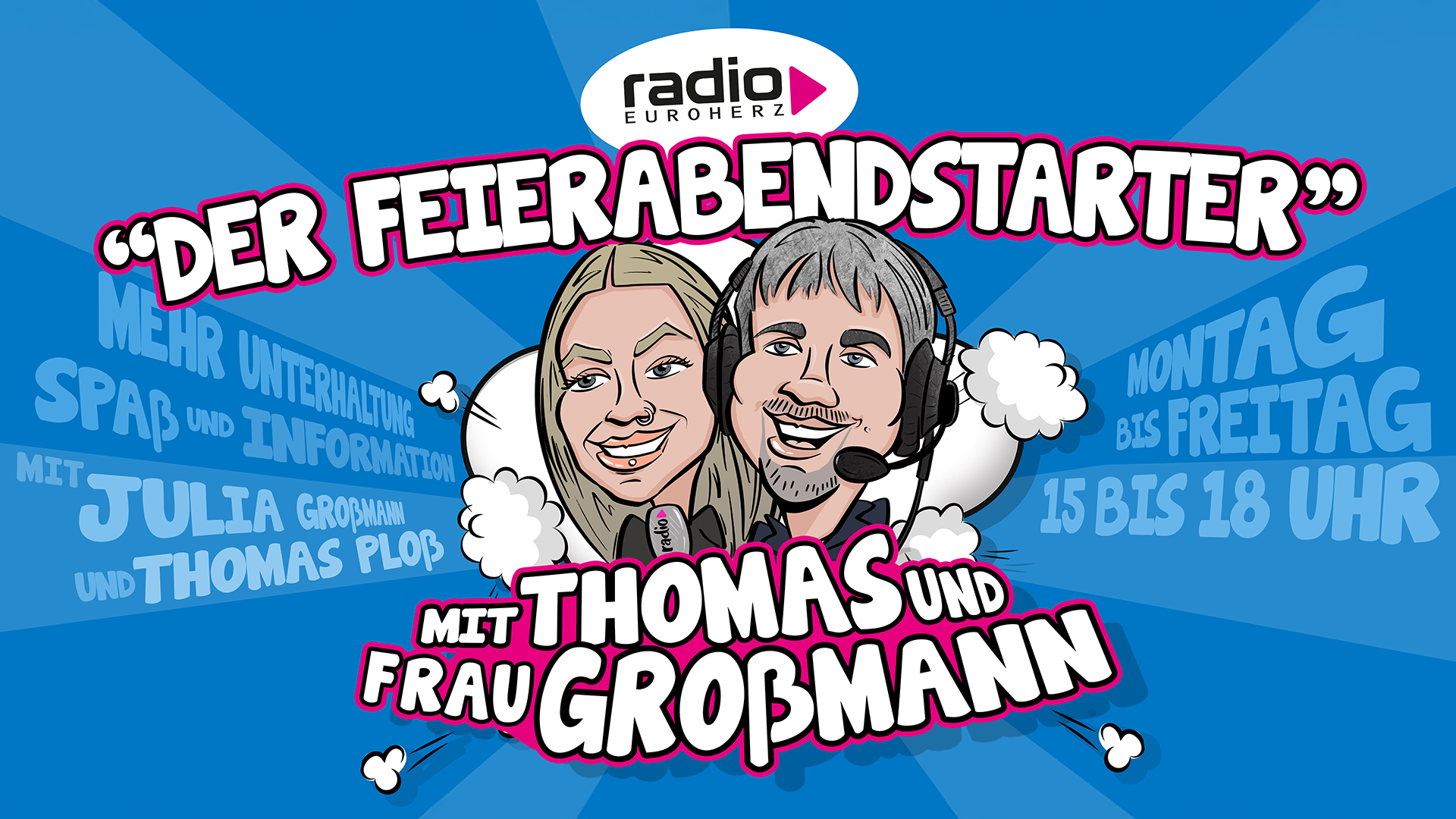 Thomas & Frau Großmann begleiten euch in die schönste Zeit des Tages – zwischen Job und Zuhause.